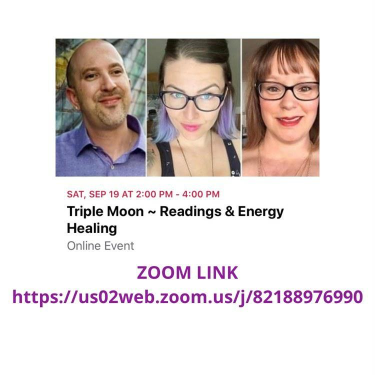 Candice Arseneau, Christine Gilmour and myself have an event coming up today! It’s the Triple Moon Tarot event! We will be doing tarot readings on Zoom from 2pm to 4pm. If you feel moved to do so, please feel free to donate to one of our three charities.